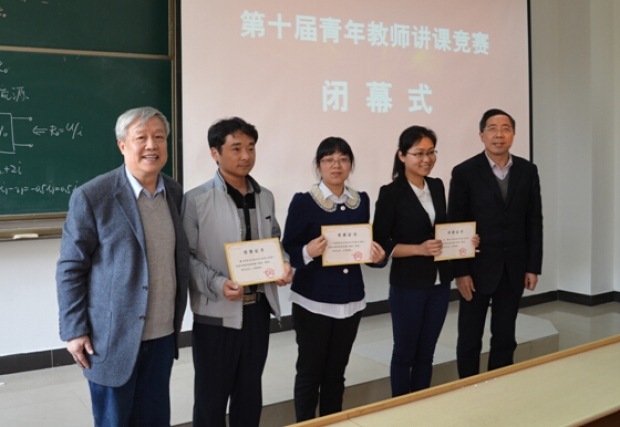 竞赛活动结束后,举行了闭幕式,并对获奖者现场颁发获奖证书。在闭幕式上,李建东指出,青年教师讲课竞赛是提升教师教学能力一种很好的途径与平台,是对青年教师教学能力和水平的检阅,展示了青年教师的教学风采和教学技艺。他对各位评委辛勤劳动和精辟的点评表示感谢,评委老师的一言一行为青年教师树立了典范。感谢所有参赛选手,选手们清晰的课程讲解、严谨的逻辑思维、科学的教学设计、优美的板书布局、有效的学生互动等,都给在座的老师及同学们留下了极其深刻的印象。他希望青年教师能深刻领会专家的精心点评,学习有效的教学经验,再接再厉,在教学上取得更好的成绩。他强调,在教学工作中最重要的是“用心”,“用心”教学,“用心”关注学生。谈到“用心”,李建东说,梁昌洪教授发现教具上有灰尘就擦掉是“用心”、不吃饭也要提前30分钟到课堂也是“用心”,“用心”在于日常、在于点滴。