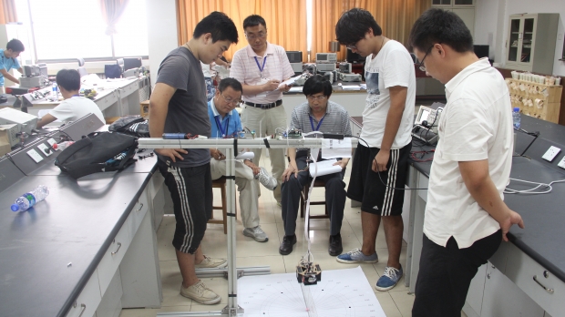 据了解,竞赛历时四天三夜,要求参赛队伍(每支队伍三人)按试题要求设计出如: 《短距视频信号无线通信网络》、《风力摆控制系统》、《增益可控射频放大器》、《多旋翼自主飞行器》、《小球滚动控制系统》等十类相关作品。评审环节将从8月17日持续至21日。威尼斯9499登录入口共有7个学院的37支代表队参加了此次竞赛。