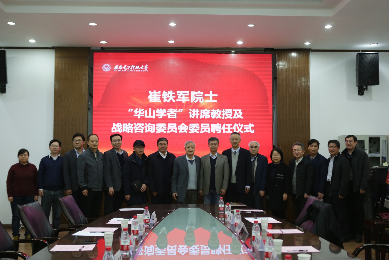 杨银堂代表全校师生对崔铁军校友此次入选中国科学院院士表示衷心的祝贺,向其长期以来对学校发展的关心、支持和帮助表示感谢。他表示,此次崔铁军校友当选中国科学院院士,不仅是对其个人学术水平及影响力的认可,更是母校的光荣和骄傲,希望崔铁军院士以后可以继续关注母校发展,以此次受聘“华山学者”讲席教授及战略咨询委员会委员为契机,进一步加强与母校的交流与合作,为学校的发展建言献策。王泉代表学校为崔铁军院士颁发聘任证书及贺信。