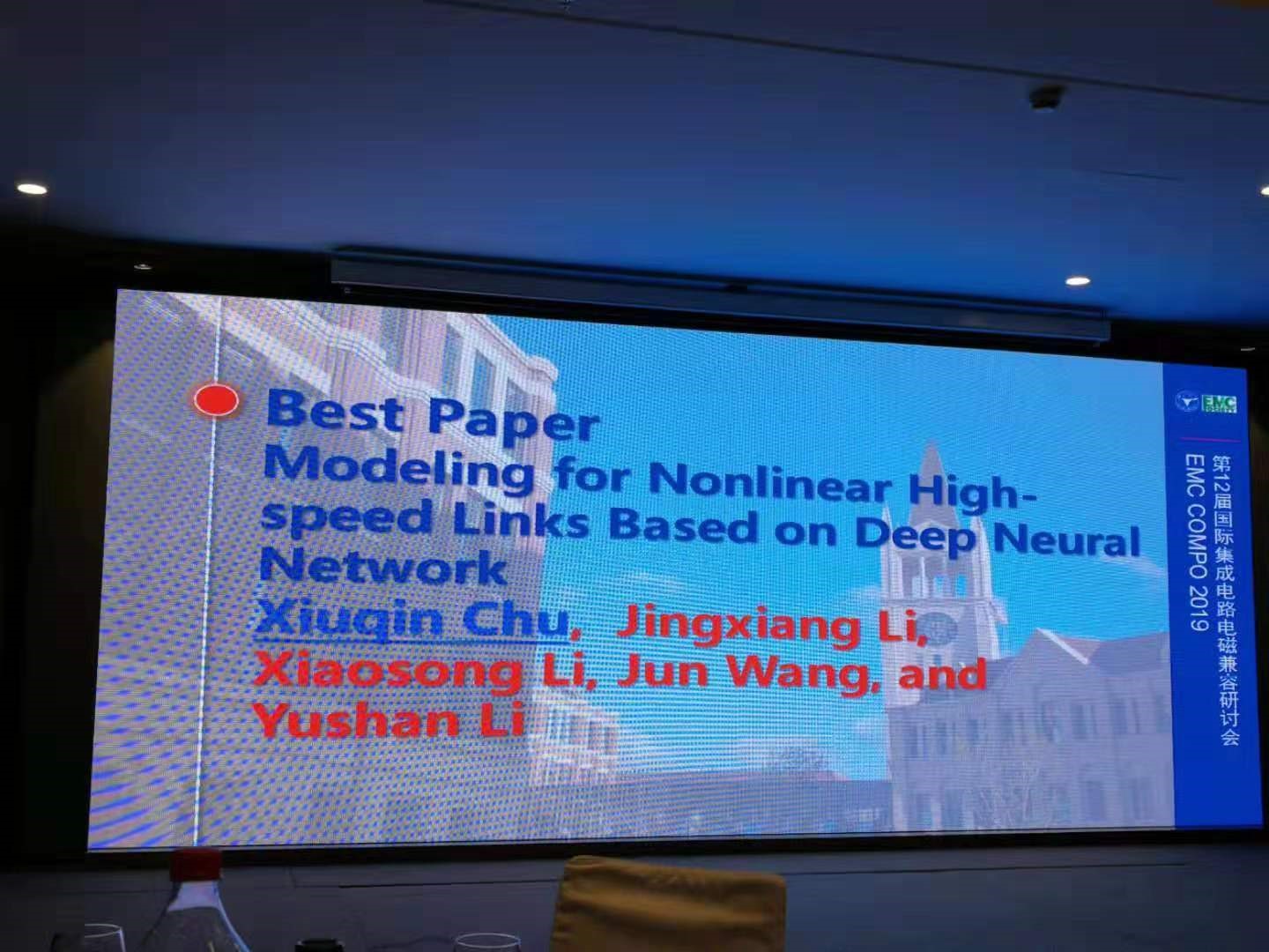 10月21日至23日期间,会议各个分会场分别围绕大会主旨,开展不同主题的研讨会和专题报告,会议投稿文章的口头报告和海报展示环节也精彩纷呈。来自五湖四海的专家学者在此分享自己的研究课题和成果,交流探讨国际电磁兼容领域的最新发展动态,也给从事 IC EMC 研究的同行们提供了许多建设性的建议和指导。为了鼓励科研创新,大会评选出3篇优秀学生论文,2篇优秀论文,1篇大会最佳论文。其中,我校超高速电路设计与电磁兼容重点实验室初秀琴团队的论文“Modeling for Nonlinear High-speed Links Based on Deep Learning Method”获得大会唯一的最佳论文奖,获得大会优秀论文奖的分别是法国和日本的研究团队。