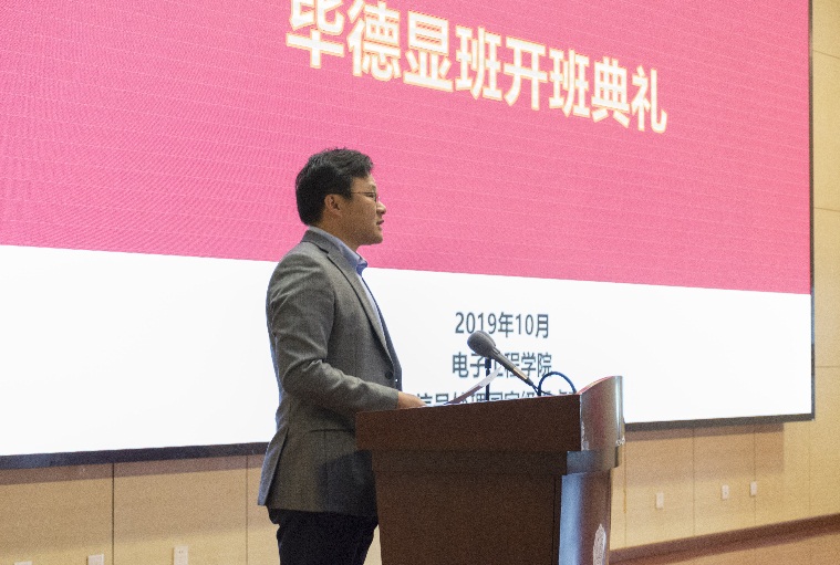 在简洁又不失隆重的开班仪式上,保铮、王越、张光义、贲德、张锡祥、段宝岩、郝跃、何友、王永良、LJ等十位院士纷纷写来祝贺寄语;中国航天科工集团第二研究院23、25所,中国电子科技集团第14、38研究所、西北集团有限公司,南京长江电子信息产业集团有限公司、陕西黄河集团有限公司、航天南湖电子信息技术股份有限公司、中国兵器工业第二〇六研究所、成都中电锦江信息产业有限公司等部分毕德显班“协同育人基地”发来贺信。