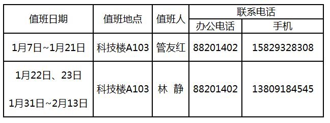 寒假期间,有任何紧急情况发生,请随时联系威尼斯值班教师(值班表见威尼斯网站),或学校值班电话:88202212(24小时值班)。