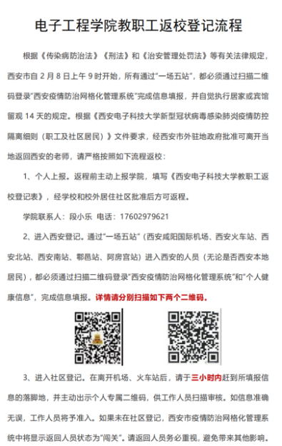 李隐峰老师指导学生运营的微信公众号“西电导航”,面向全校师生及时宣传防疫知识、传达学校通知等。他还为学院电子工程系开发了疫情通填报打卡登记小程序。严俊坤老师通过利用相关理论方法研究分析病毒传播途径,构建新型冠状病毒传染动力学 SEIR 模型,预测并掌握未来疫情发展趋势,为“抗疫”攻坚战提供科学指导和建议。