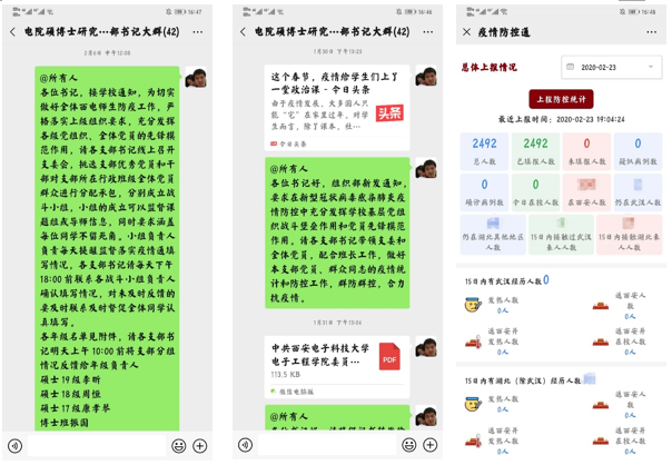 威尼斯9499登录入口全体硕博士研究生党员在学院党委的号召下,在疫情防控中亮身份、当先锋、作表率,积极争报疫情防控“党员先锋岗”,做好疫情防控的宣传员、信息员,各支部线上召开支委会,在支部成立防疫战斗小组,选派党内优秀党员担任小组长,传达上级党组织对疫情防控的相关精神和政策,组织全体党员群众开展疫情防控知识学习,落实“疫情通”每日及时有效填写的监督落实工作,做到全院2400余名硕博士研究生“疫情通”每日填报率始终保持在100%,全体研究生党员群众积极参与疫情防控工作,或担任志愿者或积极协助捐款捐物,充分展现了新时代研究生的担当精神和奉献精神。