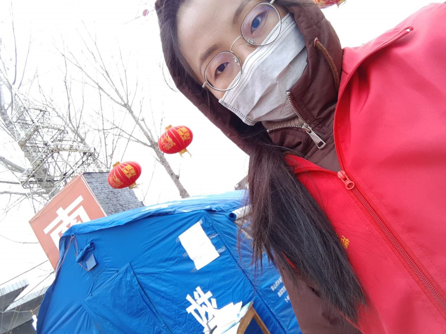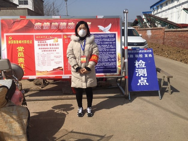 王颖萍同学在安徽省明光市涧溪镇担任防控劝导点志愿者