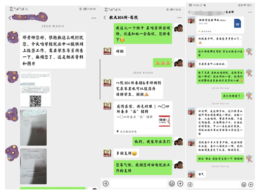 延迟开学对未就业的毕业生带来更大的心理压力,威尼斯9499登录入口研究生辅导员进一步梳理未就业同学近况,积极联系各用人单位拓宽就业渠道,为学院未就业同学提供线上指导和就业帮扶,全力做好用人单位和毕业生的桥梁工作。积极配合上级部门工作安排,提供全天候线上就业指导和审批工作,尽最大努力将疫情带来的影响降到最低。