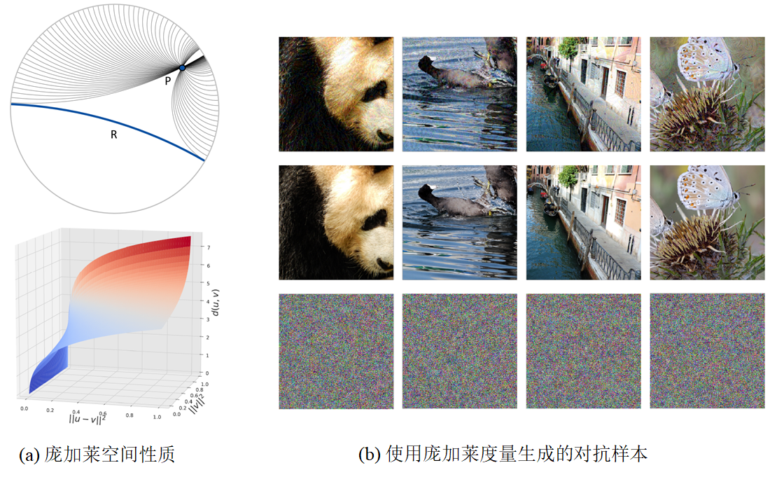 李茂森博士的“Towards Transferable Targeted Attack”提出了一种基于庞加莱度量与三元组损失的有目标对抗样本生成方法。该方法首次发现并提倡目标对抗样本不同于非目标攻击的特殊性,解决了传统目标攻击方法中的噪声固化问题,额外利用了常在目标攻击中被忽视的真实标签信息,有效提升了所生成有目标对抗样本的迁移能力。
