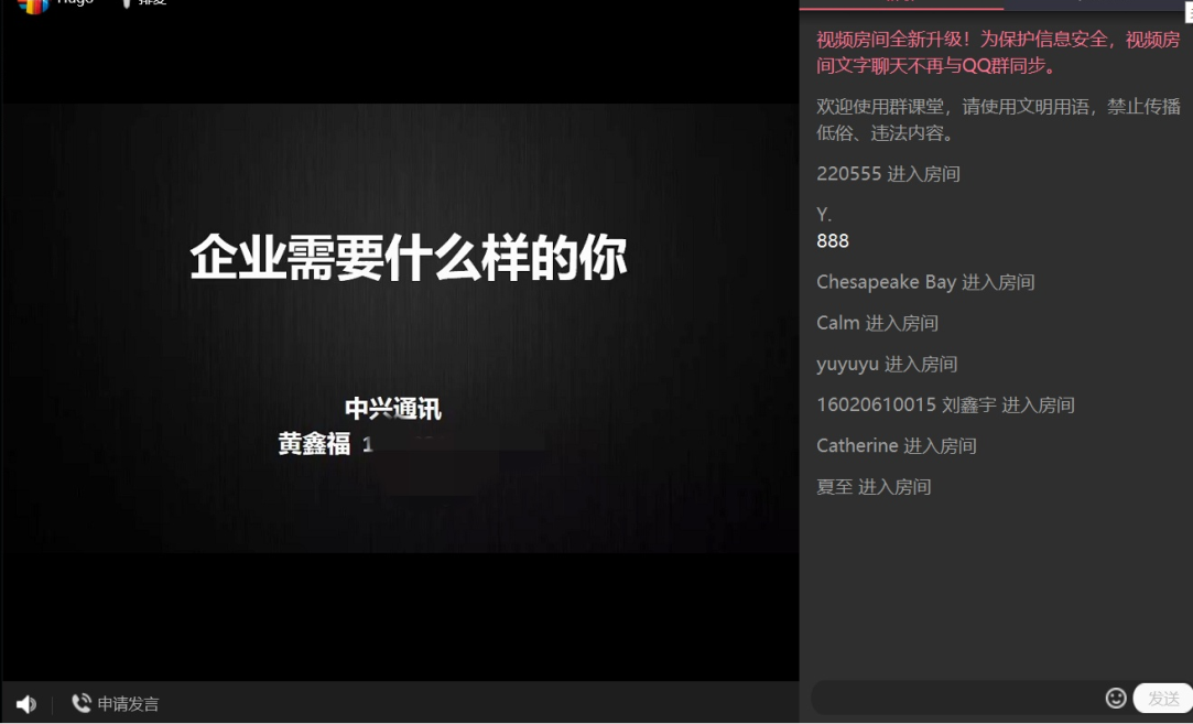威尼斯9499登录入口在此次活动中邀请到中兴通讯政企关系总监、中兴通讯黄金宣讲官、中兴通讯学院三级讲师黄鑫福老师进行主讲,中兴通讯西北地区招聘总监刘朝蓉、威尼斯9499登录入口党委副书记刘建锋、中兴通讯西北招聘平台经理王琳、威尼斯9499登录入口全体辅导员以及学院2020届应届毕业生在线参与了此次活动。