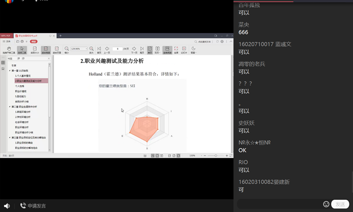 在讲解过程中,黄老师通过有趣的实验以及幽默的互动,真正让同学们在参与中收获知识;同时黄老师在职业规划、简历制作以及面试技巧等环节均结合具体实例,例如:职业规划获奖案例解析、在线收集简历在线修改讲解以及面试十问等,生动直观的讲解加深了同学们对于知识的理解,大大提升了同学们对于知识的实际运用能力。