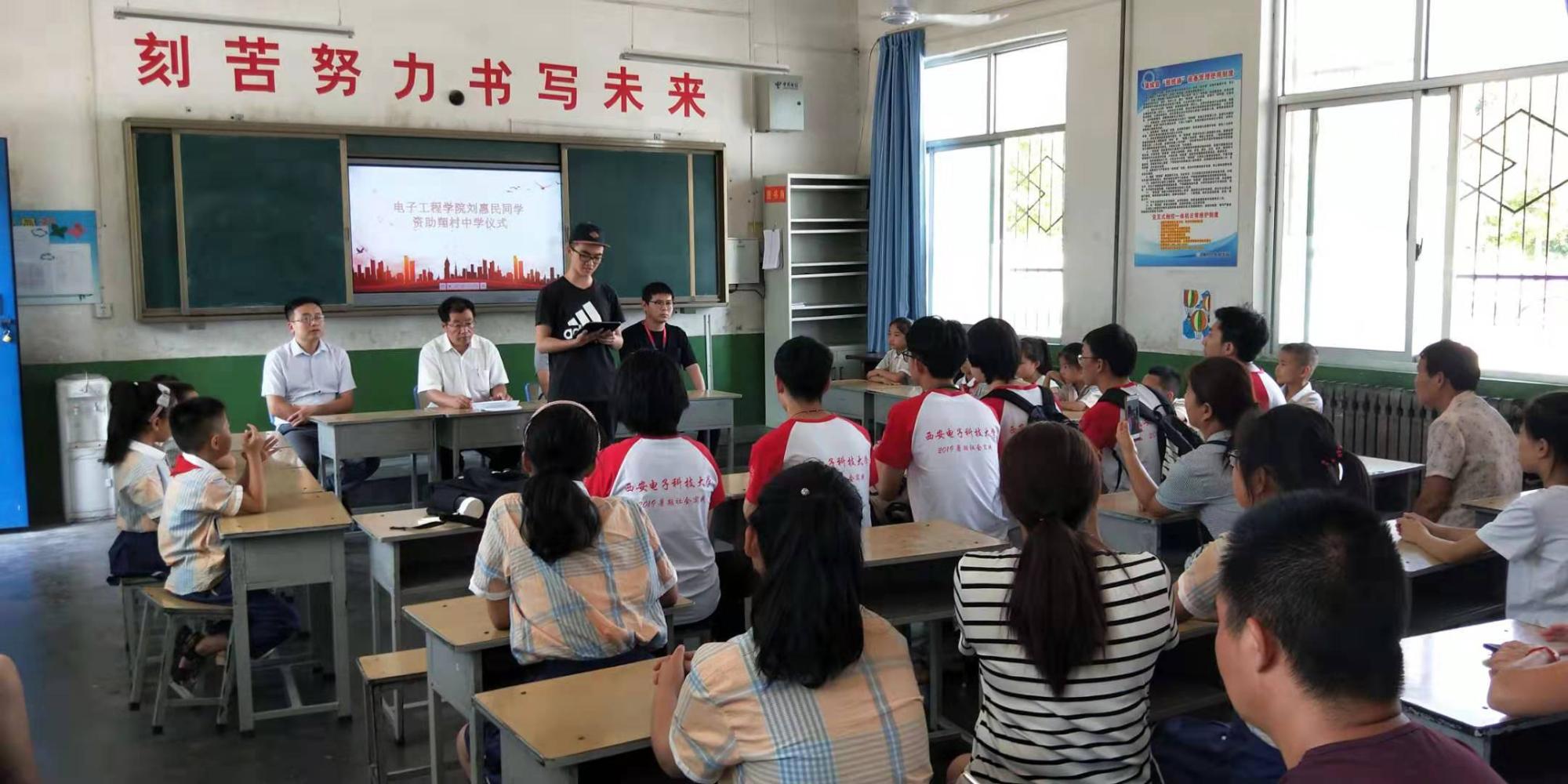 学院在每年毕业班就业季开展基层就业专题教育,宣讲精准扶贫政策,讲述西电人在蒲城县助力脱贫故事,引导广大毕业生到西部基层就业,取得了一定成效。学院2017届毕业生刘坤丽、2019届毕业生张振钢参加志愿服务西部计划;学院2018届毕业生王琳珠参加研究生支教团项目;学院2019届毕业生邹宝利、张灿参加选调生计划到贵州基层就业,一批批威尼斯学子以实际行动参加到基层一线的脱贫攻坚事业中。特别值得一提的是,在学院的教育引领下,学院2016级本科生刘惠民自愿捐出10000元奖学金资助蒲城翔村中学10名贫困学生。