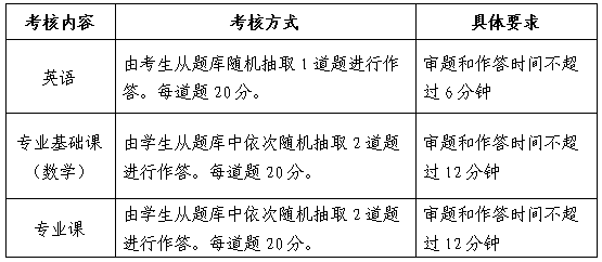 基础知识考核内容包括:英语、专业基础课(数学)、专业课三部分,考核范围为2020年学院博士招生简章复试笔试内容。该项考核总分100分,成绩达到50分及以上视为基础知识考核环节合格,考核合格考生方有资格进入后续综合面试。