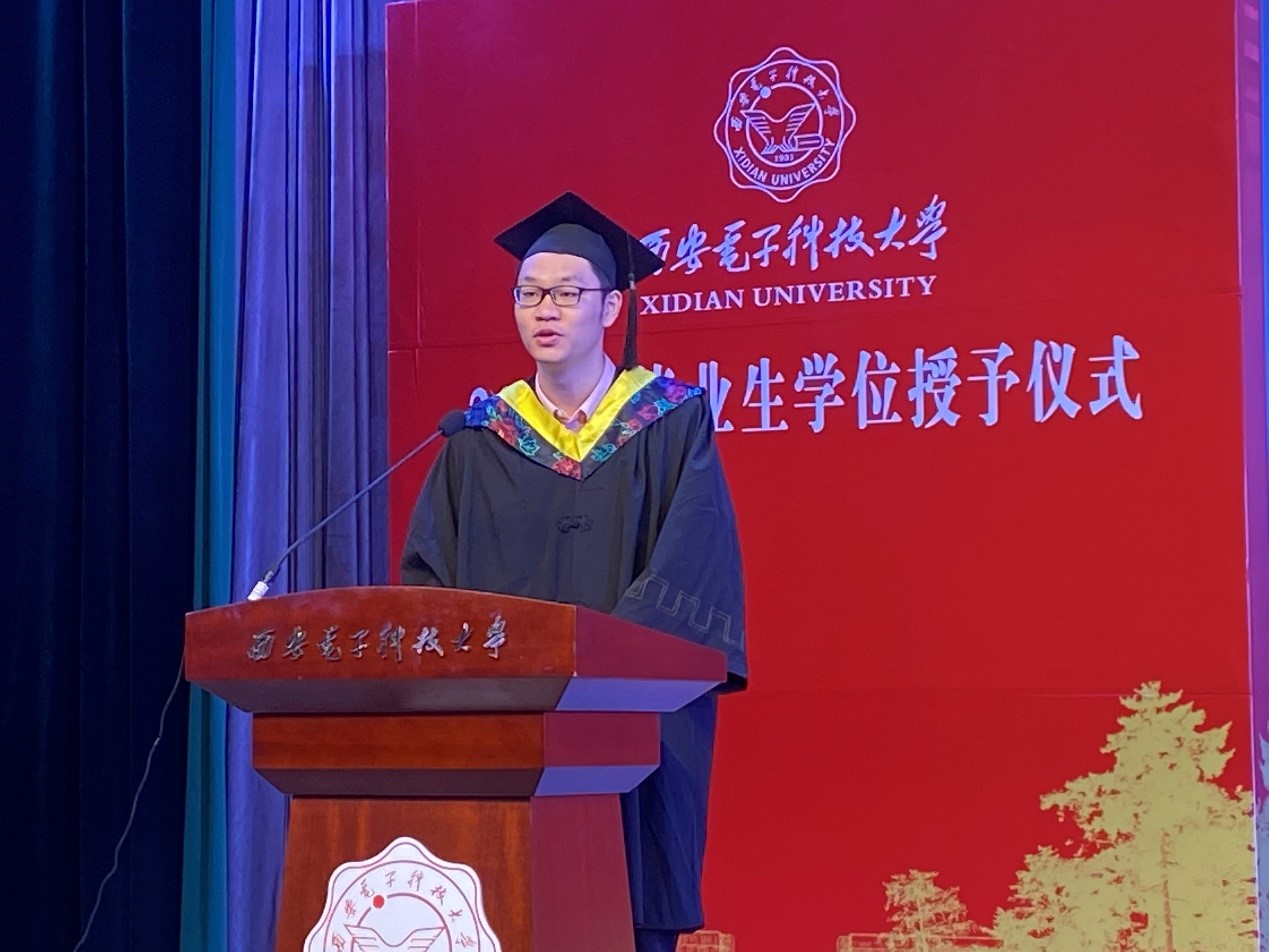 本科毕业生公瑾作为学生代表,与大家一起分享了毕业的激动与感动。他回忆了自己大学四年的难忘点滴,向一直以来辛勤培育学生的学院领导、严谨认真的任课老师、亦师亦友的辅导员老师表示最衷心的感谢,对未来表示信心满满。他说:“威尼斯为我们提供了学习和发展的平台,我们逐渐褪去稚气,扛起责任。作为祖国的新青年,作为三有西电人,我们要时刻牢记对于国家和民族的责任,勇于承担使命和担当。走出校门,我们要做一个德才兼备、勇于创新的人,做一个勇于承担、敢挑重担的人,做一个有理想有追求有担当的大写的西电人。