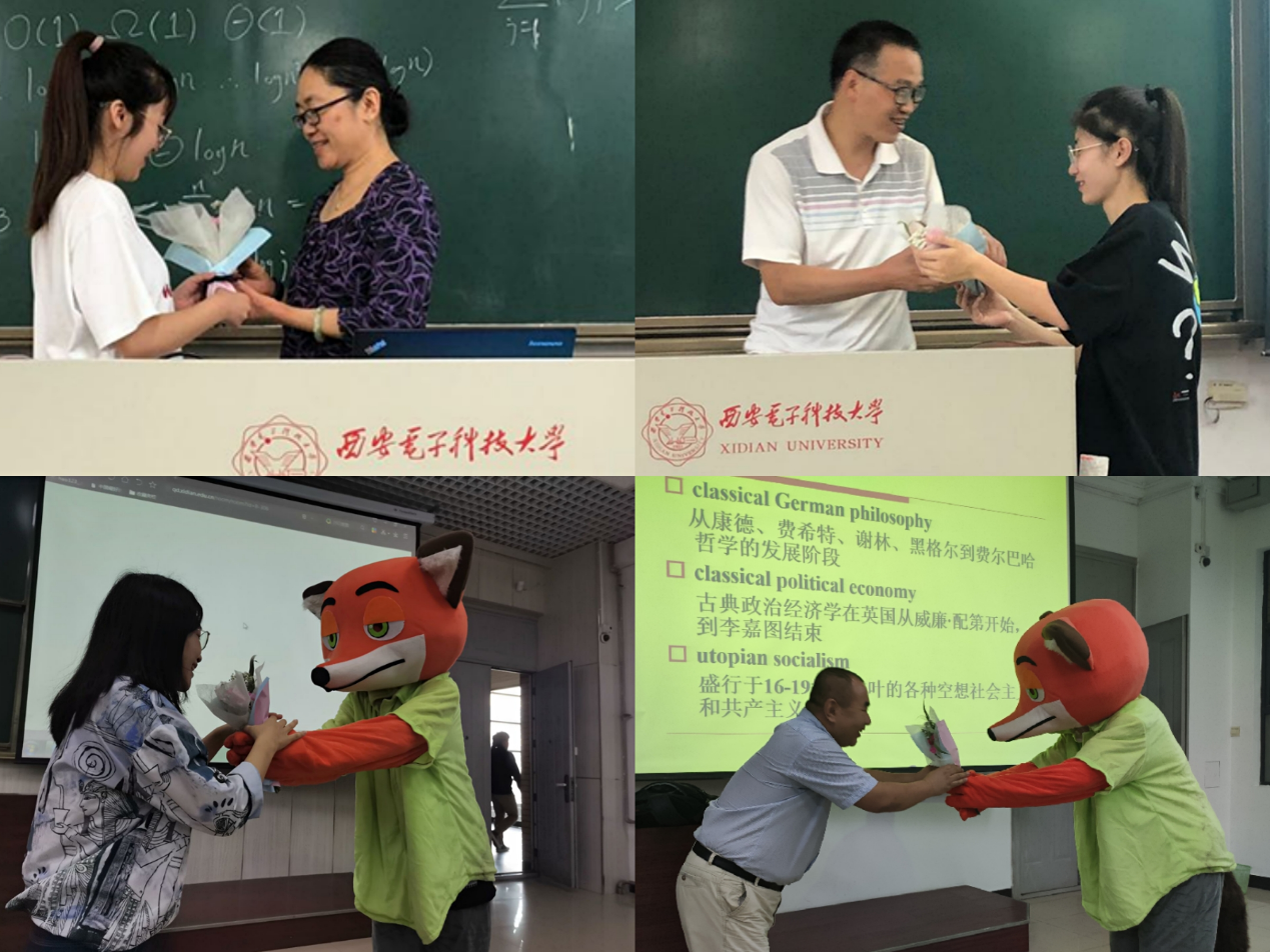 上课前,学生代表身着卡通服饰,拿着为老师们精心准备的贺卡和花束走进教室,随后全班同学喊出“老师,幸苦了,祝老师节日快乐”,同学们用最简单、质朴的方式表达出了对老师们的敬意和祝福,感谢老师们的默默耕耘,感恩老师们的辛勤付出。收到同学们的祝福,老师们脸上洋溢着幸福的微笑。