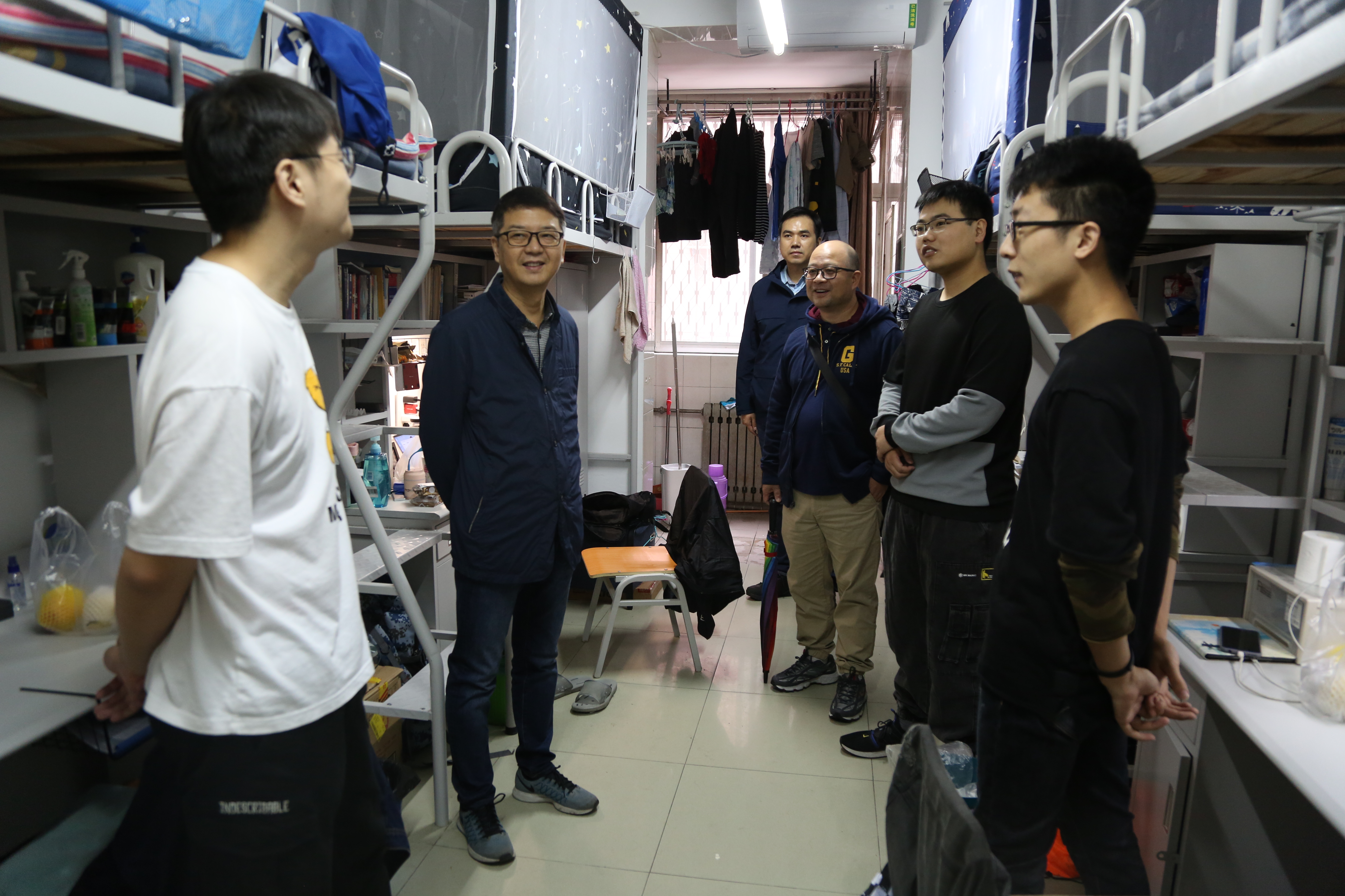 在南校区,学院院长廖桂生、党委副书记刘建锋带领辅导员老师们来到本科生宿舍,和辅导员老师一起将水果、月饼送到同学们手中。“多久没回家了?”“学习生活有什么困难吗”“疫情还没有完全结束,同学们还是不能放松警惕。”在拉家常的对话之后,老师们和同学们互相送上了节日的祝福。