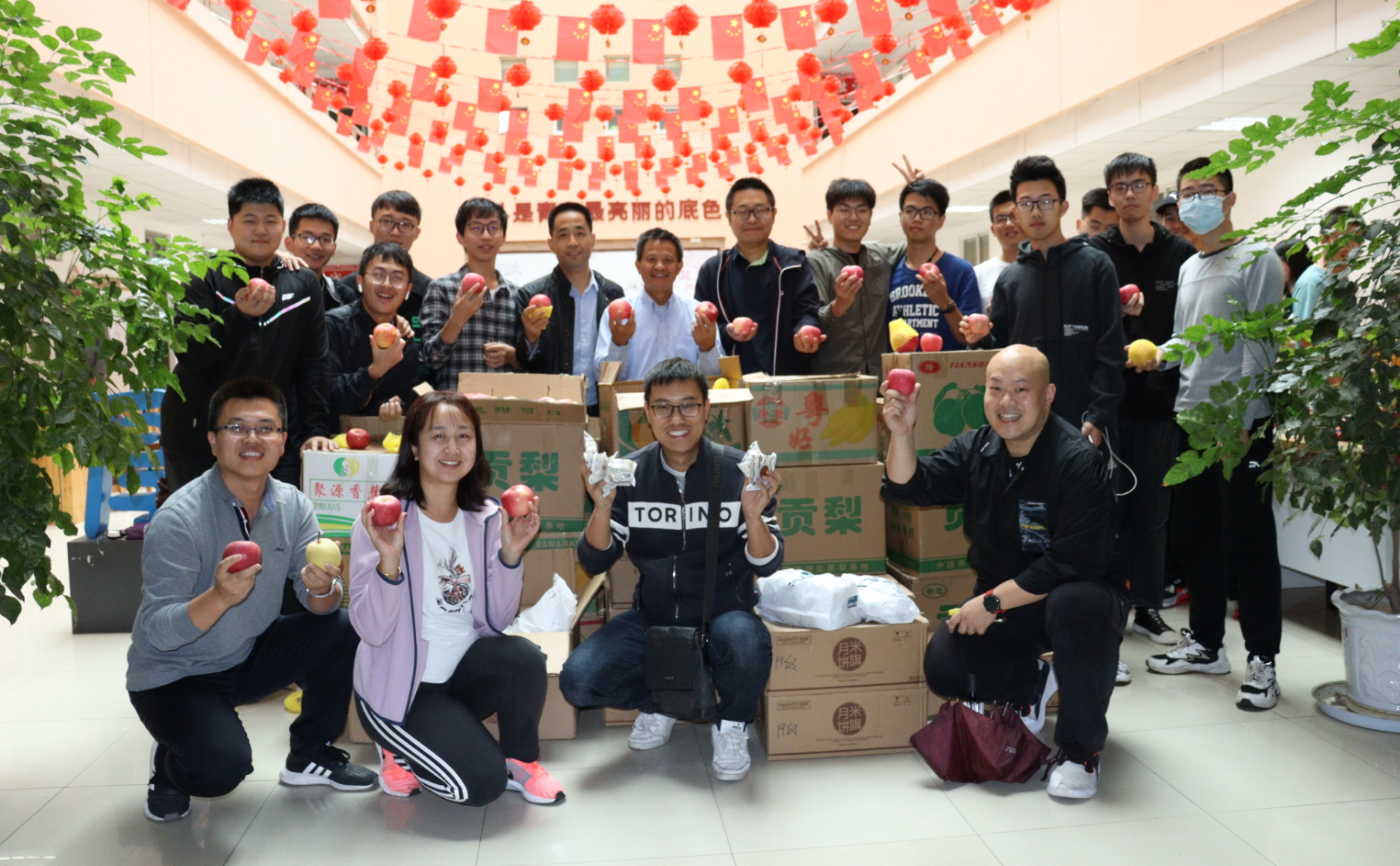 (通讯员:王丹、邓鉴)有国安,才有家圆。今年,中秋与国庆不期而遇,“家”与“国”撞了个满怀。为了让同学们感受到学院的关心关爱,“双节”当天一大早,学院领导就带领辅导员老师们为学院南北校区5500余名学生,送来了温暖的节日礼物,一个月饼、一个苹果、一个酥梨,承载着学院对同学们最诚挚的祝福。