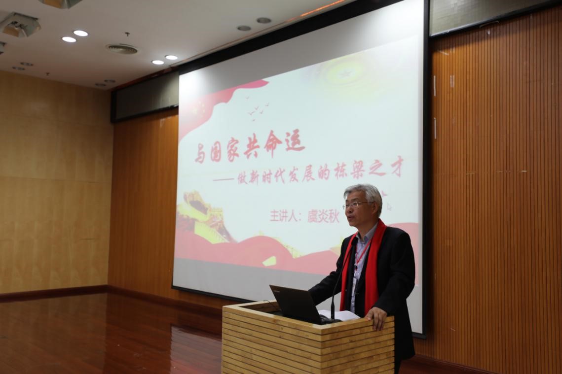 在报告会上,虞炎秋从中国电子工业的发展趋势,企业发展历程及共和国电子工业长子成长之路,企业治理及国企改革的动向、人才、分配政策,业务工作,利益分配,关系处理等六个方面,系统阐述了中国国有企业的改革发展历程,并给同学们就报国精神、团队精神、实践能力和强健体魄等方面提出了四点建议,还将自己的丰富经历和人生感悟分享给了同学们,让在校的学弟学妹对国企的改革发展历程有了全新的认识,加深了同学们对国企的了解程度,增强了走近国企的主观意愿。他告诫同学们要发挥专业特长、业精于专、天道酬勤,为祖国建功立业、成就精彩人生。最后,虞炎秋现场接受“校外导师”聘书。九十分钟的报告,精彩纷呈,发人深省,现场气氛热烈,台下掌声雷动。
