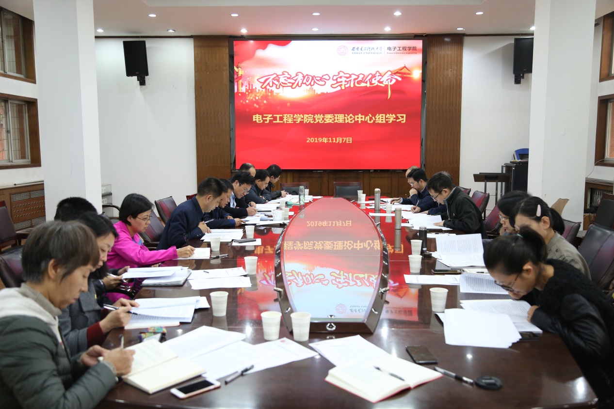 会上,廖桂生领学了中国共产党第十九届中央委员会第四次全体会议《决定》,结合学院实际强调了坚持马克思主义在意识形态领域指导地位、推进治理体系和治理能力、完善科技创新体系建设、构建全民终身学习的教育体系等重要内容,要求班子成员、两委委员和党支部书记要认真按照学校党委提出的三方面要求宣贯、落实十九届四中全会《决定》。刘建锋传达了学校党委和纪委文件,强调教师党员干部不断加强师德师风建设,将廉洁理念内化于心,做到知敬畏、存戒惧、守底线。邓成逐一解读了教育部《关于深化本科教育教学改革全面提高人才培养质量的意见》的22条,并介绍学院在新工科视域下的创新拔尖人才培养体系建设现状。