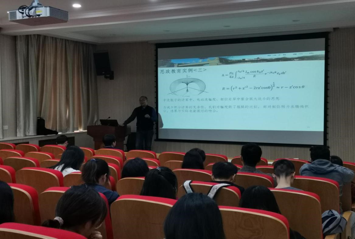 报告中,梅教授以所讲授的《电磁场与电磁波》课程为例,结合教学本身,选取天线阵、半波振子等课程内容,生动形象地向大家展示了如何进行课程思政建设,科学合理拓展专业课程的广度、深度和温度,有效增加课程的知识性和人文性,将“读万卷书”和“行万里路”有机结合,真正做到润物细无声。梅中磊教授的专题报告站位高、视野广、案例详实丰富,干货满满。在会后的交流研讨环节中,参会教师就课程思政效果评价、专业课思政元素挖掘及教学设计、思政与专业的平衡等议题与梅教授进行了深入探讨。