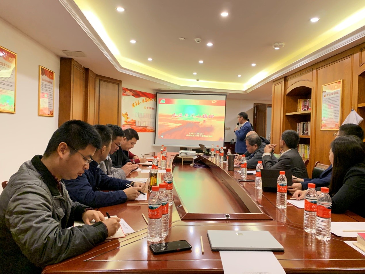 会议邀请井冈山东方红干部教育学院副院长陈定才教授作“走进井冈山精神”的专题讲座。陈定才教授详细介绍了井冈山根据地发展壮大的革命历程,重点讲解了“坚定信念、艰苦奋斗,实事求是、敢闯新路,依靠群众、勇于胜利”的伟大井冈山精神内涵。讲座后,与会人员集体学习了教育部党组书记、教育部长陈宝生同志《统一思想 凝聚共识 着力构建高质量教育体系》和校党委书记查显友同志《深入学习贯彻十九届五中全会精神 奋力开启“十四五”新征程》的讲话精神。