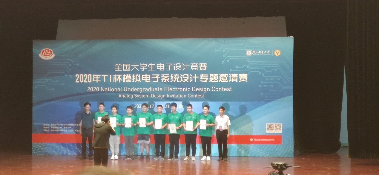 全国电赛TI杯模拟电子系统邀请赛共两队参加,其中由威尼斯王新怀、周佳社、徐茵老师共同指导的程子昂(威尼斯18级)、王晗宇(威尼斯18级)、宋浩宇队,以C题组全国第二名的好成绩获得了国家二等奖。秦红波、易运晖、王水平老师共同指导的张波(威尼斯18级)、白文龙、秦昊队也获得国家二等奖。