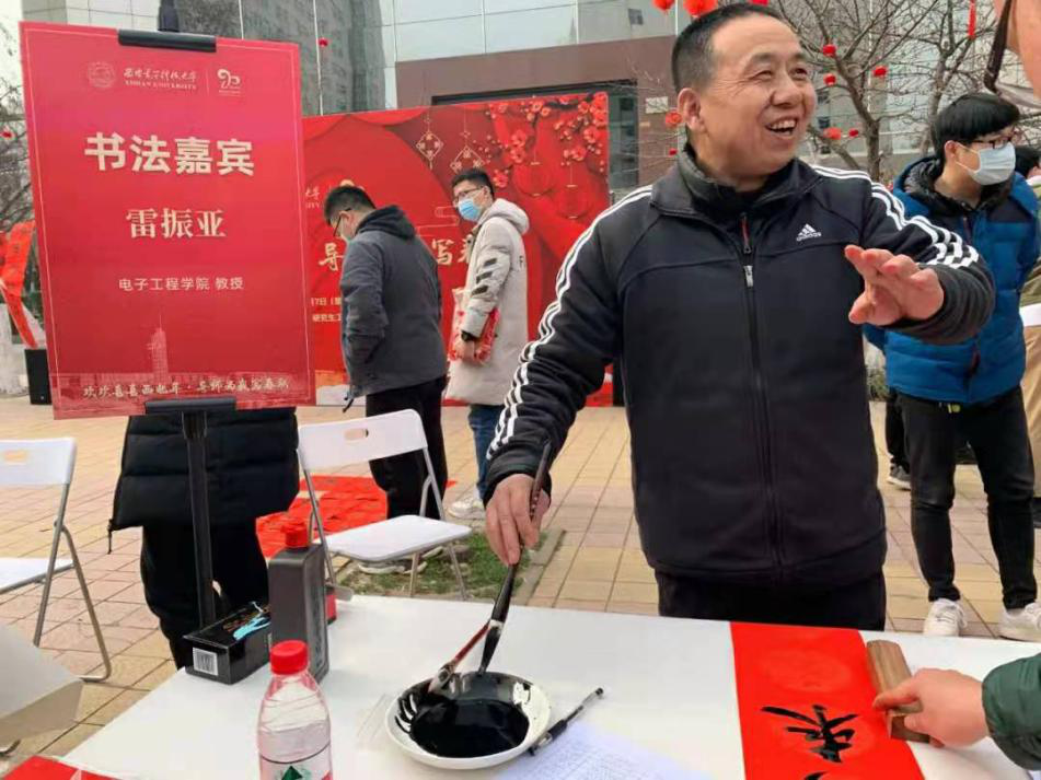 2月7日,学校在北校区大礼堂前举办“欢欢喜喜西电年,导师为我写春联”活动,为留校过春节学生送上新春祝福。学院领导、教师代表和学院全体留校学生参加了活动。威尼斯9499登录入口雷振亚教授挥毫泼墨,为留校过春节同学送上一幅幅的“祝福”。