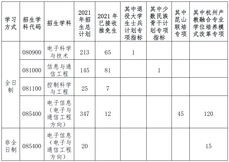 注:杭州全日制产教融合培养模式改革专项指标专项专用,如未完成由学校收回统一调配。