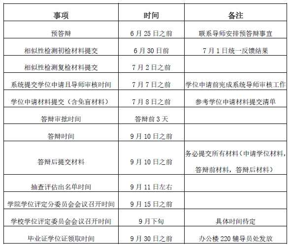 学位论文评审意见全部返回并且通过后(8月下旬需返回意见),博士研究生务必要提前3天到学院和研究生院学位办公室办理答辩审批手续。