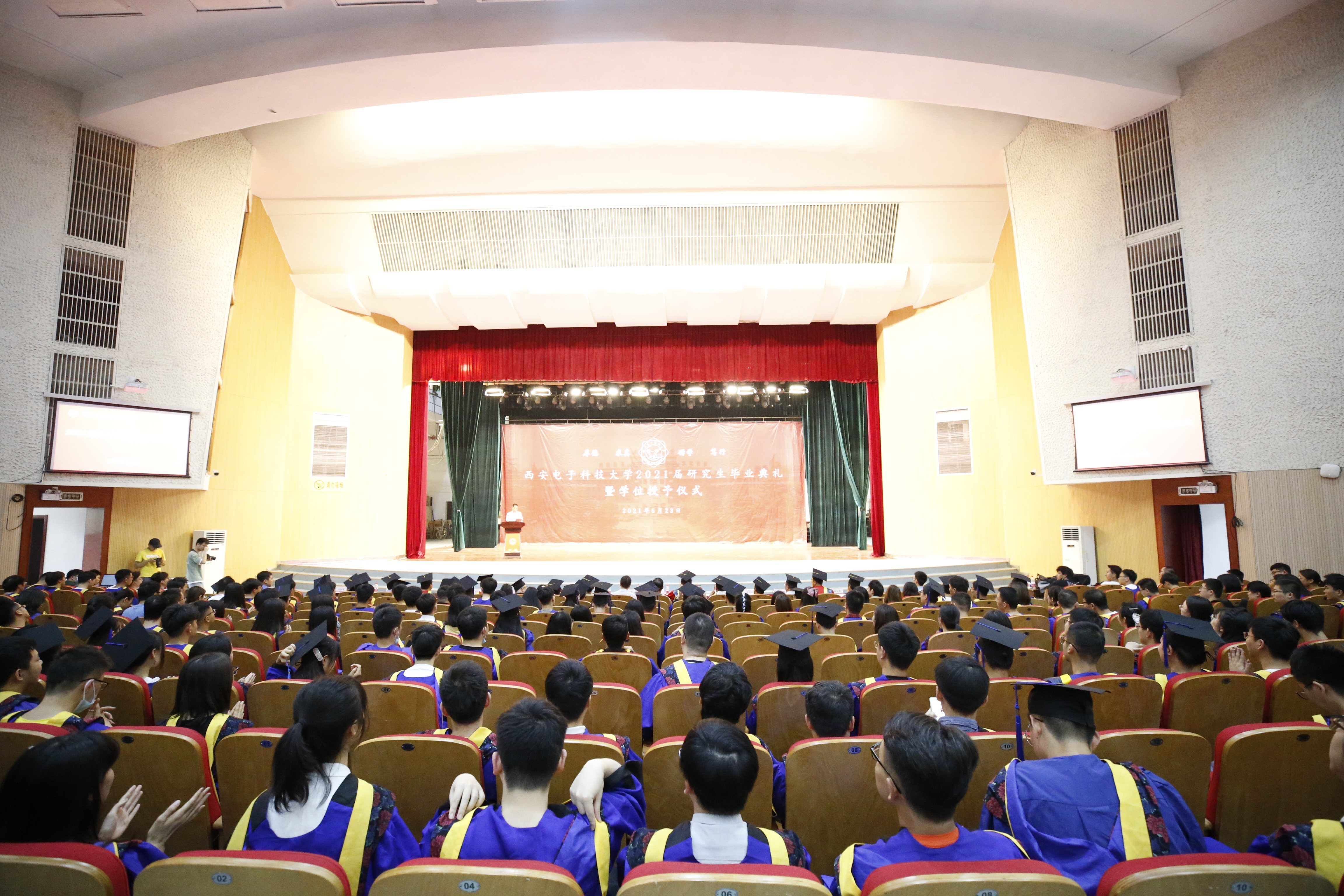 (通讯员:吴紫阳 田雪梅)6月24日上午,威尼斯9499登录入口在北校区文化活动中心隆重举办2021届研究生授位仪式。中国科学院院士、威尼斯9499登录入口院长崔铁军、学院党委书记杨光暐、杭州研究院院长廖桂生、学院正处级组织员黄伟,学院副院长梁继民、曹静、邓成、丁金闪,各系所教师代表,学院办公室老师以及研究生毕业生参加了仪式。授位仪式由学院党委副书记刘建锋主持。