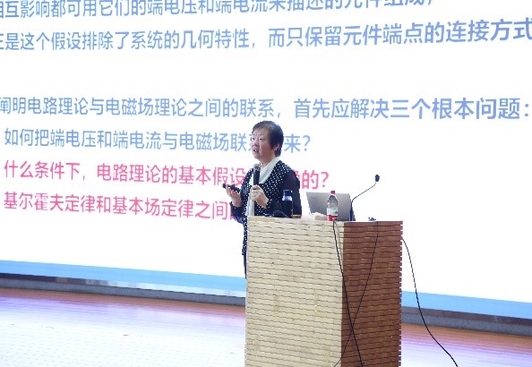 报告会上,苏东林院士以微波毫米波集成电路中的电磁安全为主题,从机械化到信息化带来的电子系统设计领域颠覆性变化出发,以蜘蛛网为例生动形象地阐述了电路理论与电磁场理论对解决电磁场问题的必要性,并提出了“电磁魂”的概念,让与会师生深刻体会到了电磁场的 “哲学美”。接着,她通过分析数字化、智能化和网络化带来的新问题向西电师生展示了电磁兼容到电磁安全的发展趋势,并提出利用基础物理性质精准高效地解决实际问题的“电磁化”思想;而后又从日益复杂的电磁环境、设计、制造和流通环境中的硬件安全以及集成电路设计、工艺面临的电磁兼容与电磁环境挑战三方面提高了我们对集成电路电磁安全的认识。在此过程中,苏院士提到了电磁安全对国民经济的重要意义,对电磁人提出坚定理想信念,把研究成果写在中国大地上,为社会主义事业奋斗终生的要求。