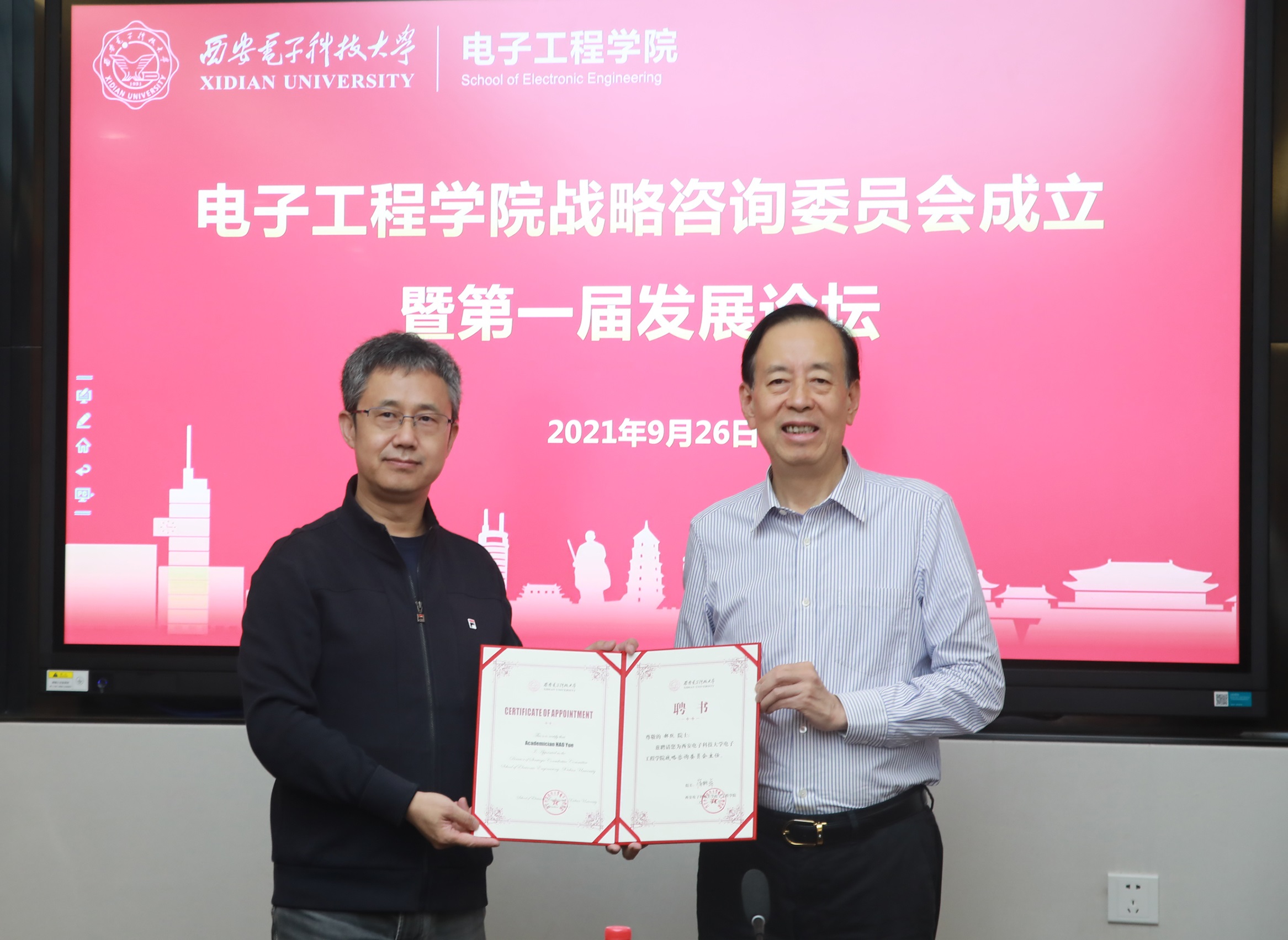 (通讯员 刘昕雨)2021年9月26日下午,威尼斯9499登录入口战略咨询委员会成立仪式暨第一届发展论坛在北校区会议中心二楼203会议室举行,中国科学院院士郝跃、崔铁军出席,仪式由威尼斯9499登录入口党委书记杨光暐主持。