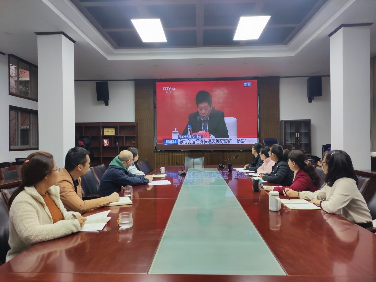 (通讯员 刘昕雨)中国共产党第十九届中央委员会第六次全体会议2021年11月8日至11日在北京召开,中央委员会总书记习近平作了重要讲话。会后,发布了《中国共产党第十九届中央委员会第六次全体会议公报》。11月12日上午,威尼斯9499登录入口以支部为单位,组织通过网络、电视等多种途径观看收听十九届六中全会新闻发布会,深刻学习领会会议精神。