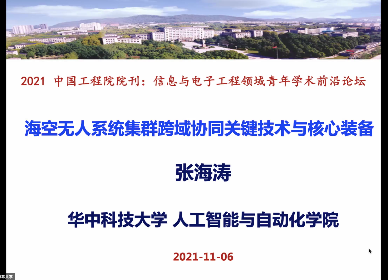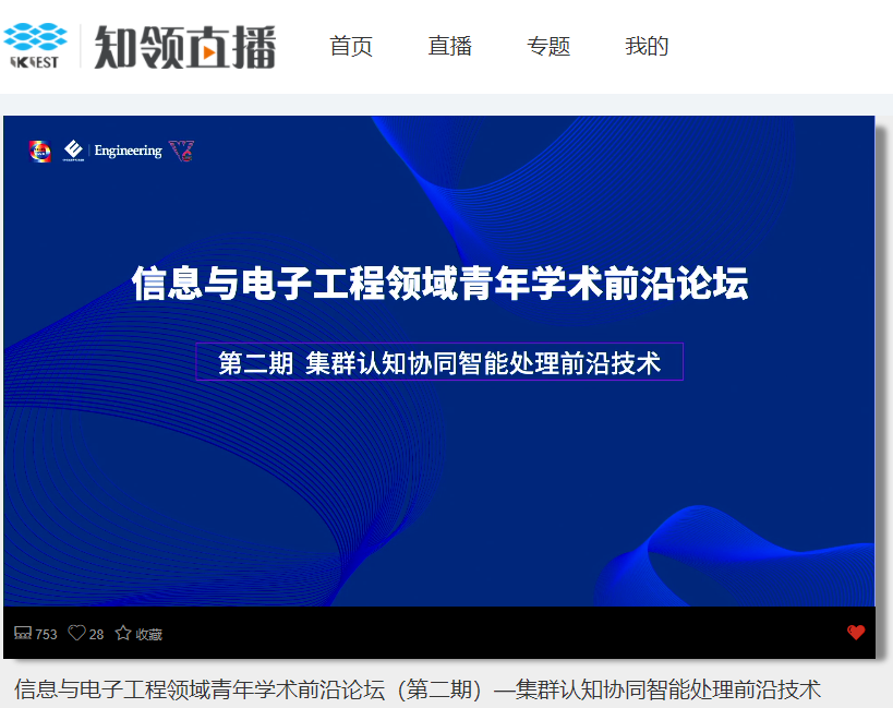 2021年11月6日上午,第二期“中国工程院院刊:信息与电子工程领域青年学术前沿论坛”成功举办。本期论坛以“集群认知协同智能处理前沿技术”为主题,邀请同济大学洪奕光、国防科大徐昕、清华汪玉、北理工孙健、华中科大张海涛、北大王龙六位教授做特邀报告。中国工程院知领等多个平台同步直播,各平台总计八千余人收看。