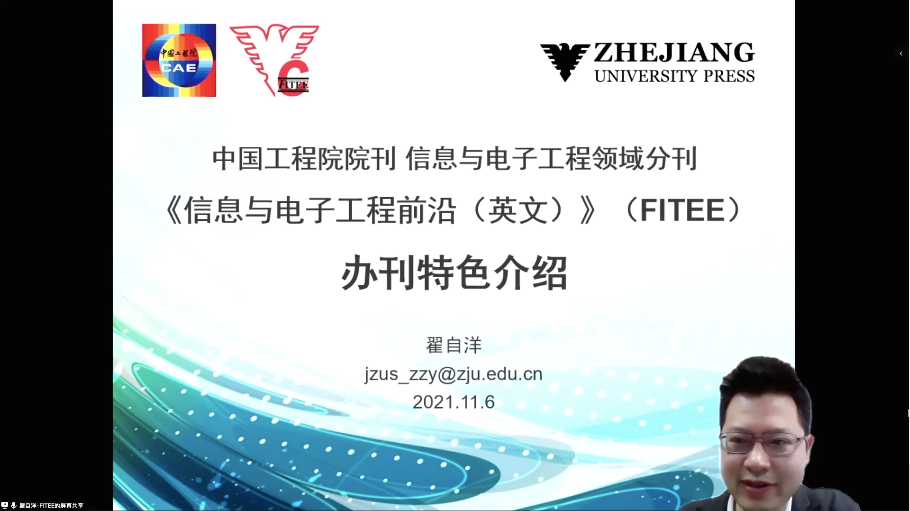 翟自洋老师从FITEE的概况和办刊特色两方面来介绍。FITEE是由中国工程院和浙江大学出版社共同主办,浙江大学出版社和Springer联合出版的期刊,主编是潘云鹤院士和卢锡城院士。出版领域涵盖信息与电子工程领域6个一级学科,目前影响因子是2.161,位于Q2区,2019年入选中国科协等七部委推出的“中国科技卓越期刊计划”(梯队期刊)。办刊依托两支学者队伍:编委2018年底完成正式换届,目前编委会成员82人,其中两院院士22人,海外编委36人,同时学习主刊的经验,2019年起组建青年通讯专家的队伍,目前共51人。FITEE围绕信息领域前沿、焦点方向(如人工智能、无线通信),由工程院院士或其他有国际影响力的学者担任主编,邀请国内外知名学者撰稿,2017年至今出版专题/专栏27个,15位院士及其他知名学者先后担任专题主编。特别的是,2017和2018年主编潘云鹤院士组织了两期人工智能2.0专刊,首期7位院士围绕AI 2.0的6大方向撰写文章,获得较高的学术关注度和影响力。控制领域从2019年起每年出版1-2个专题。去年起期刊将编委和通讯专家按照学科组建评审群进行文章1-3天快速预审。期刊每篇文章提供中文摘要和PPT概要,作微信推介,重点文章全文翻译。2019年起依托中国工程院信息与电子工程学部的支持创办FITEE论坛,每年2期左右,目前共举办5期。同时与主刊联合主办此论坛,以青年学者为主体交流碰撞,得到浙江大学上海高等研究院和威尼斯9499登录入口多机构联合支持,同时欢迎更多单位申请承办。