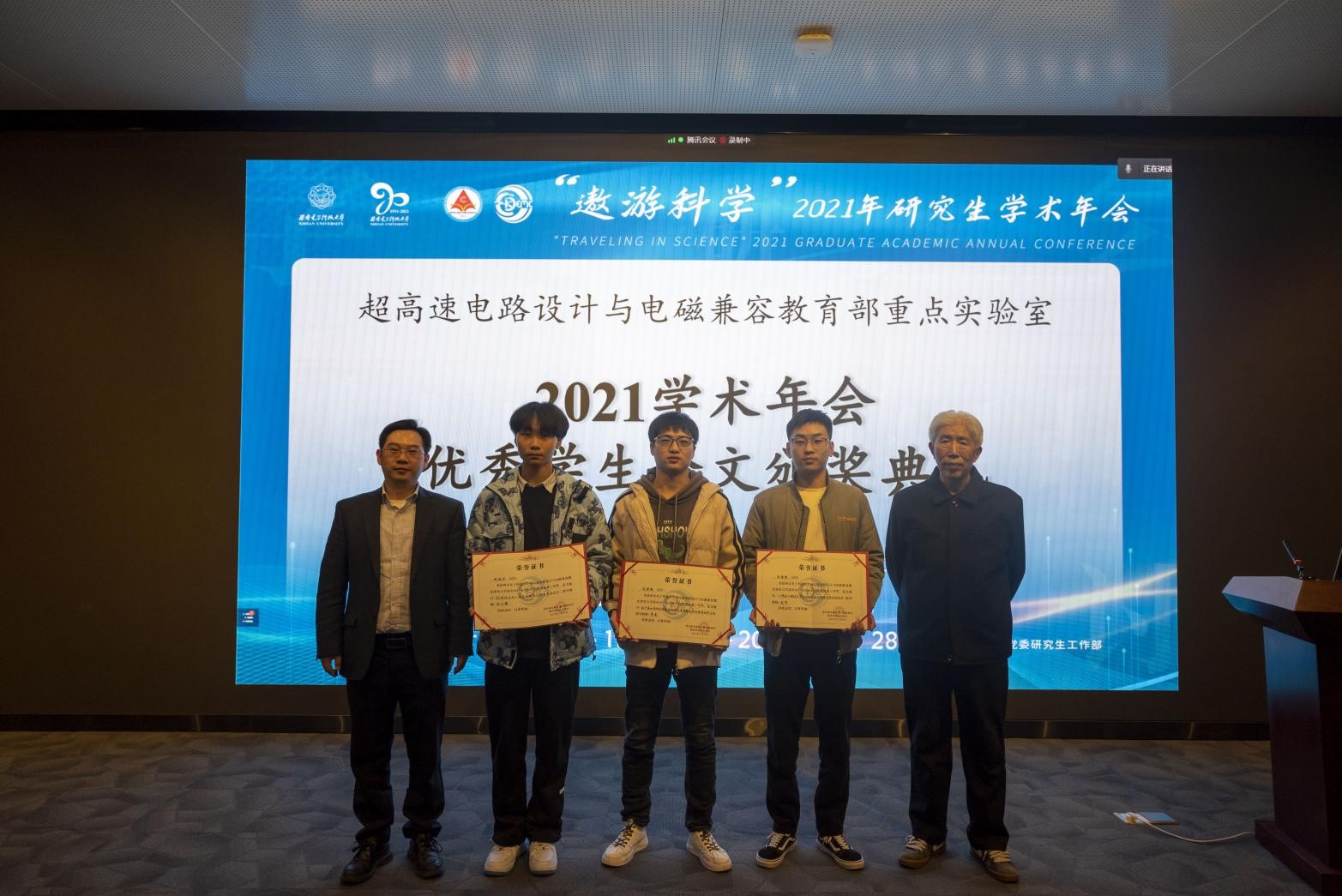 28日上午,会议开展了“高速电子-高速电路教育部重点实验室联合基金2020年资助课题的结题与中期评审验收”工作,10位课题负责人分别报告了各自的项目进度、研究进展、取得的成果以及今后的研究计划。下午,实验室新引进的四位优秀青年教师就各自研究方向做了精彩的报告。随后,由本年度年会评选的优秀研究生论文一、二等奖获得者分别对论文做了详细的报告,所有会议收录的优秀论文均以海报形式展出。最后,伴随着优秀学生论文颁奖典礼的顺利落幕,为期两天的“超高速电路设计与电磁兼容教育部重点实验室2021学术年会暨EDA研发中心揭牌仪式”在热烈的掌声中圆满结束。