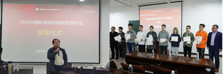 以赛促学、以赛促练,举办毫米波雷达综合设计创新竞赛,课程小组为单位完成发挥创新部分,需提交一个具有功能性的、在某一场景可以发挥实际效果的作品,结合AI等技术,如识别固液气态的装置、手势识别、动作识别等。学生参赛积极性高,踊跃完成,竞赛评比出一二三等奖,聘请了TI全球大学计划总监王承宁博士、谢胜祥经理和教务处副处长张宇鹏、国家级电工电子示范中心周佳社主任为获奖小组颁发了奖状及奖品。