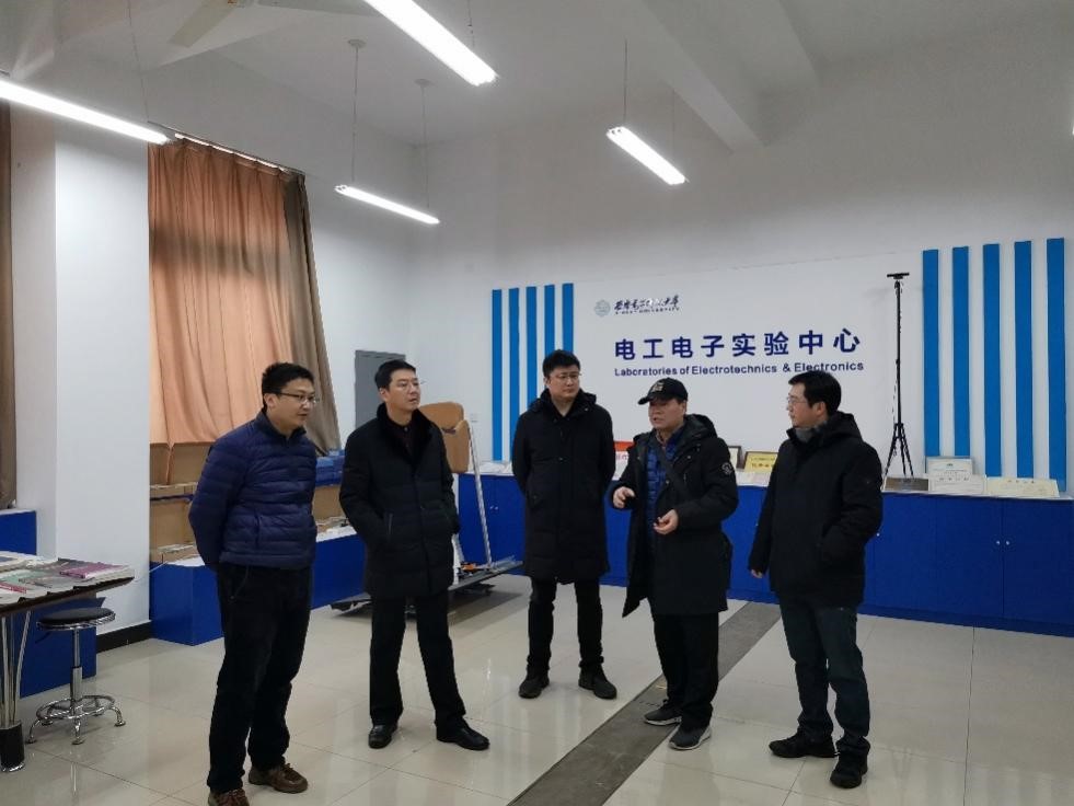 随后,班子成员深入实验室,了解学院实验教学准备情况,共商下一步发展重点。国家电工电子实验中心负责人周佳社对学院各项实验、竞赛教学准备情况进行了详细介绍。班子成员对实验教学准备情况给予充分肯定的同时,建议要瞄准行业发展趋势和区域经济建设需求,及时更新实验教学理念、升级实验设备,强化校企联合模式,加大开放力度,吸引更多学生参与学科竞赛和实践创新,提高学生创新精神和团队协作能力。