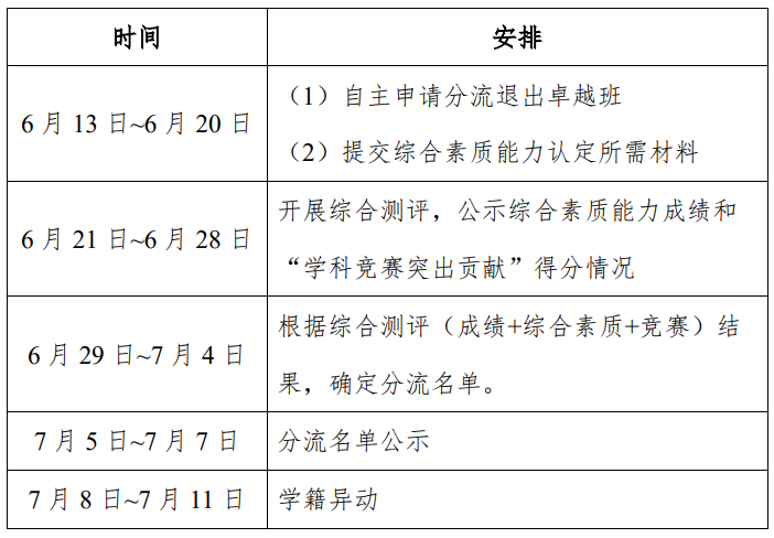 (1)自愿申请分流退出卓越班一贯制培养计划;
