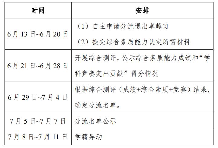 (1)自愿申请分流退出卓越班一贯制培养计划;