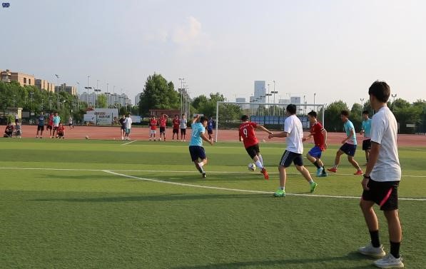 足球比赛于6月13日下午在南操场率先举行,由学院2018级毕业班足球队对阵学院2019级、2020级低年级足球联队。比赛中,双方队员都无比专注投入,打得有章有法。细腻的步法,缜密的队形部署,使得比赛紧张激烈,精彩不断。毕业班队跑位准确,传球精准,配合娴熟,展现了良好的足球天赋和扎实的足球功底,最终以5-4的比分险胜低年级联队。