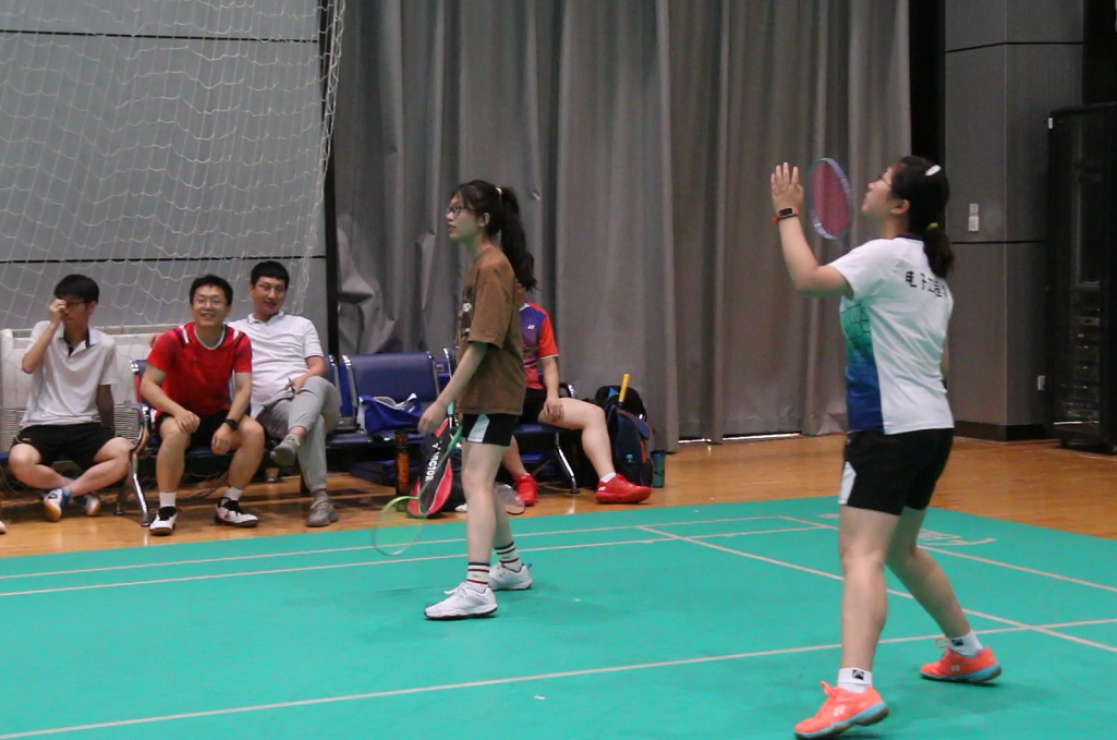 羽毛球团体赛则于6月15日晚在远望谷体育馆副馆进行。由2018级毕业班队对阵2019、2020级联队。双方参赛队员们凝心聚力、团结协作、沉着冷静、顽强拼搏,经过男单、女单、男双、女双、混双五常鏖战。毕业班队最终以2-3的比分惜败低年级联队。