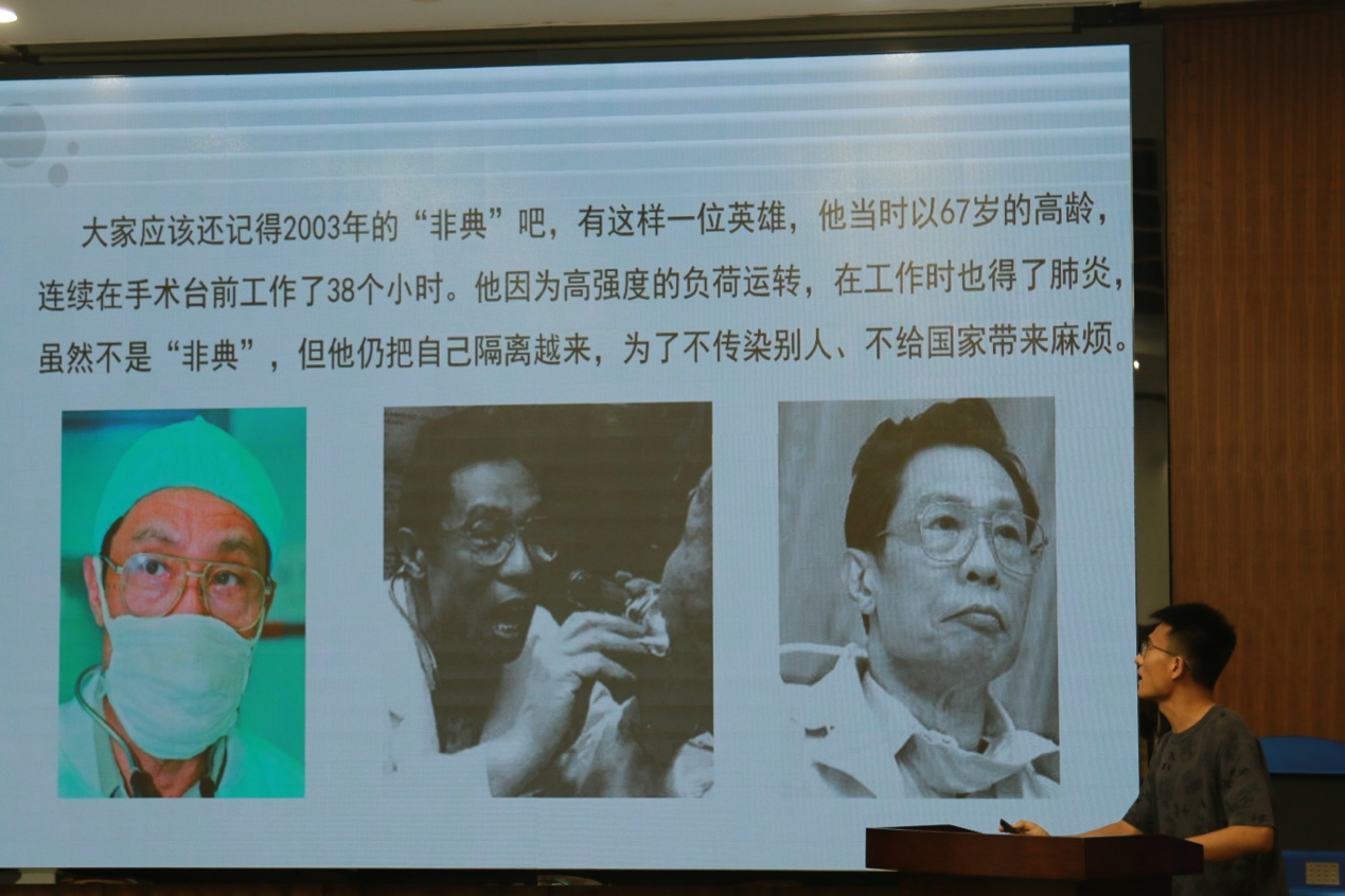“钟”究是您,迎“南”而上,重于泰“山”,他使全国人民心中的英雄。如今,在病毒又一次令全国人民陷入恐慌的紧要关头,他再一次挺身而出,给全国人民吃下了“定心丸”。他就是钟南山院士。赵浩同学说他是真正的时代先锋和时代楷模,迎难而上、舍身忘我、为国献身的精神,随时提醒着我们当代的研究生,认真学习自己的专业知识,努力提高自己的职业技能,为了党和国家的兴旺发达与长治久安尽自己最大的一份力!