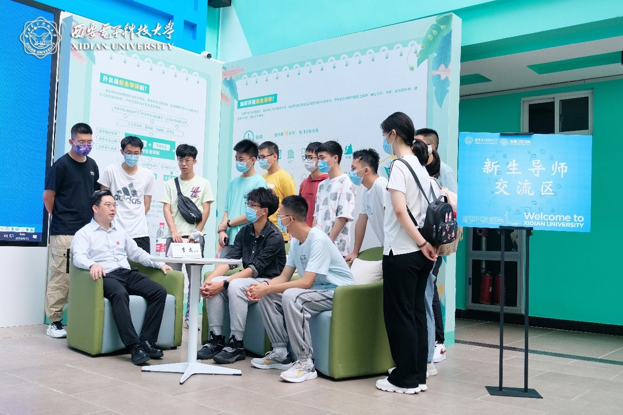 最后的环节,围在新生导师交流区的同学们纷纷提问,李龙教授一一为其解惑。刘宇泽同学表示不知道要去追求什么,也不知道如何去追求,甚至逐渐演化出焦虑感。李龙教授回答道,新生对大学生活感到茫然是正常的,这也证明了学生对自己的未来有思考。同学们应该利用好西电的优质教育资源,抓住学校提供的新生导师制这一机会,努力提升自主学习能力,养成大学“泡图书馆”的学习习惯,这样有利于更加流畅、快速的融入大学,提升自我。李书瑶同学则提出了“大学该如何兼顾学习与竞赛”的困惑,李龙教授表示,竞赛对学习有着积极的促进作用,在巩固学习基础的同时进行拔高创新,建议大家可以从大二开始积极参与。参加活动的刘羽同学表示,和导师面对面的交流互动,帮助自己更好更全面地了解了大学生活。大学里不仅能学到丰富的知识,更多的是用心体验整个过程、学会在这个过程中培养自己的各方面能力。一入西电门,一生西电人,我相信我们一定能够在这个优秀平台上发出自己的一份光亮,照耀自己,影响他人。