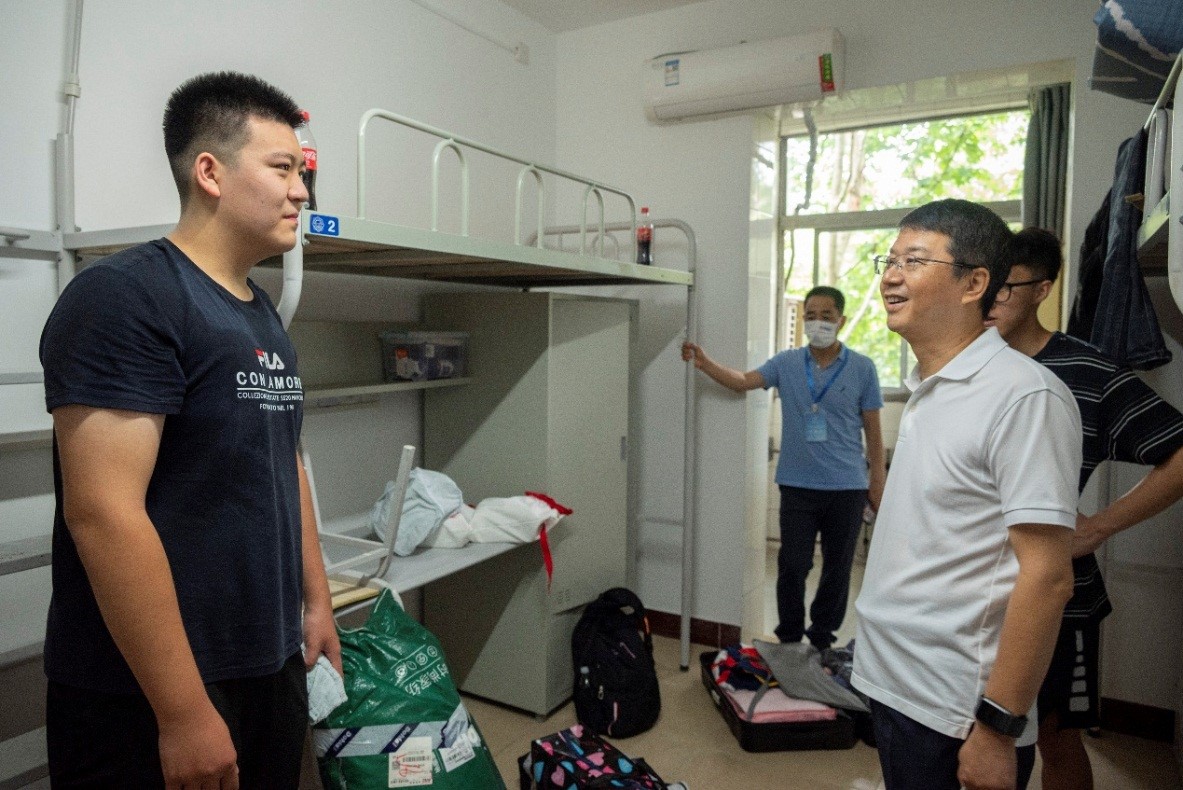 为高质量开展新生返校教育管理,了解新生生活状况、学习规划和精神风貌,学院领导先后走访中法班本科生和部分研究生新生公寓。杨光暐对新生们的到来表示热烈欢迎,寄予厚望,希望同学们珍惜韶华,立志奋发,在威尼斯这个大平台、大家庭学有所成,提醒同学们做好疫情防护,严格遵守返校静态管理要求,同时要注意加强锻炼,保持健康的体魄。