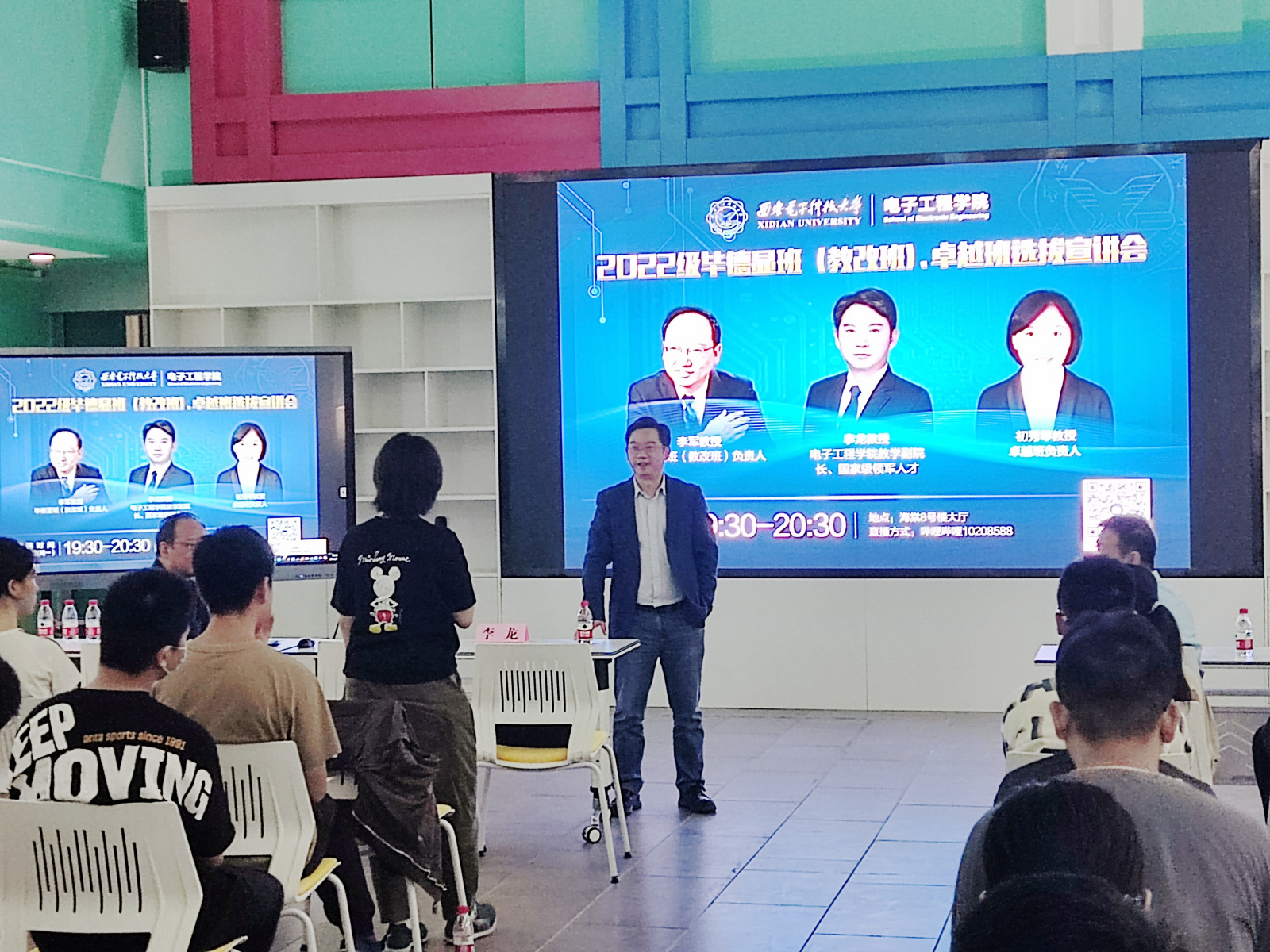 (通讯员 李雨烟 张玲 毕力格 陈幸 供图 梁翰林)为助力培养创新拔尖人才,发挥教学改革引领示范作用,遴选优秀学生进入试点班,帮助新生规划大学生活,9月26日晚,威尼斯9499登录入口联合海棠3号书院,在海棠八号楼大厅举办了毕德显班(教改班)、卓越班宣讲会。威尼斯9499登录入口教学副院长李龙教授、毕德显班负责人李军教授、卓越班负责人初秀琴教授与2022级新生展开面对面交流,鼓励学生积极参与试点班选拔,在大学遇见更优秀的自己。活动由海棠3号书院副书记赵岩松主持,线上线下同步进行,现场吸引近百名新生参加。