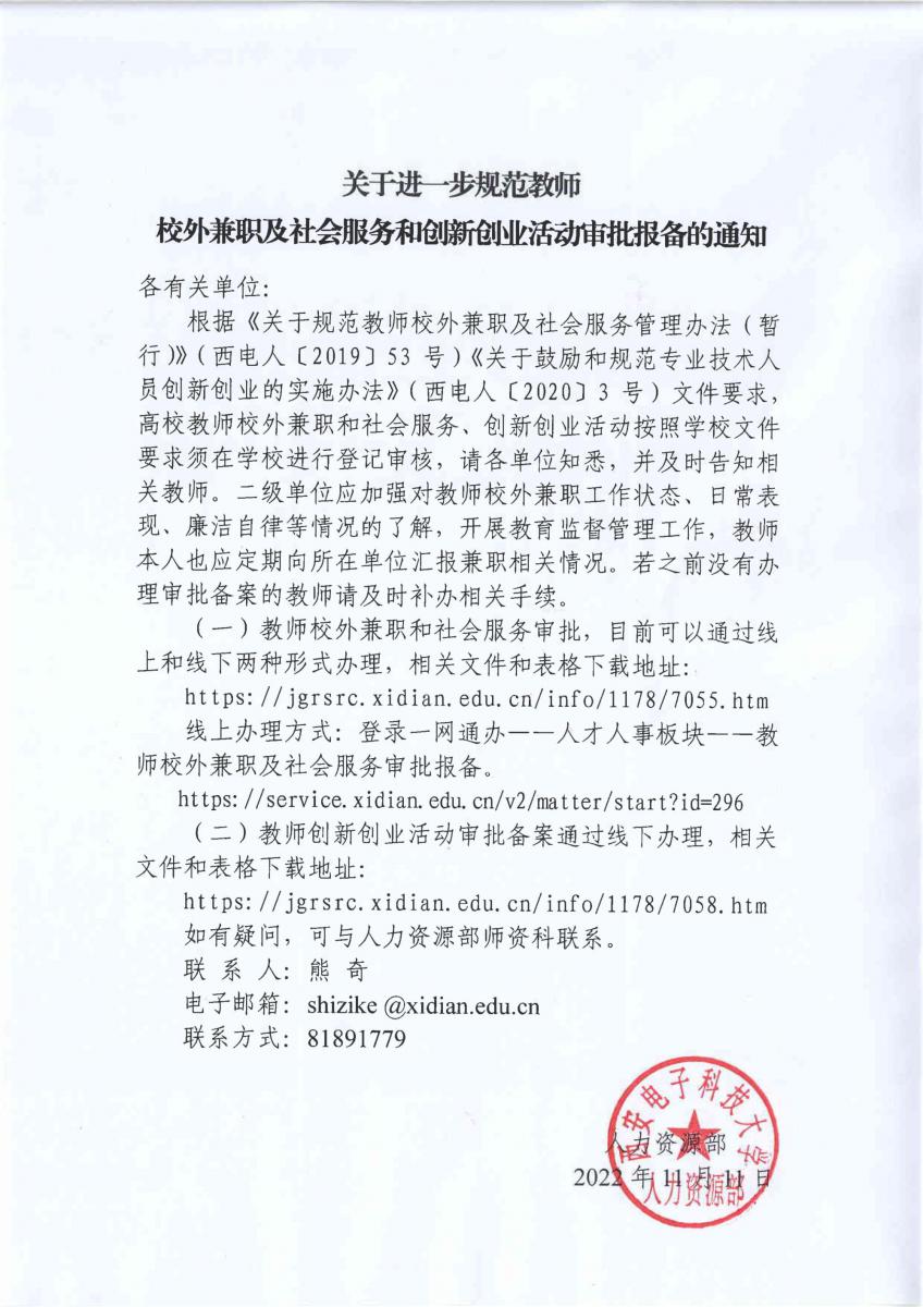 关于进一步规范教师校外兼职及社会服务和创新创业活动审批报备的通知