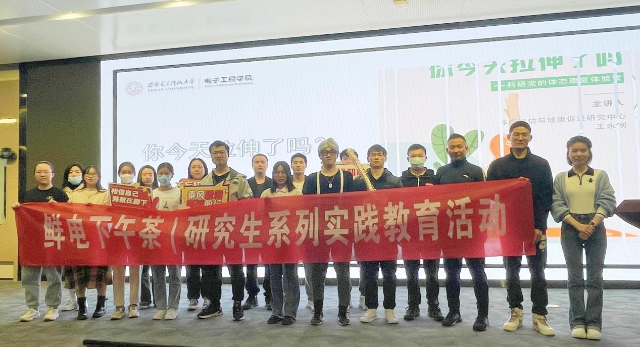 实践互动环节,王永刚老师亲身示范,手把手教授同学们正确的坐姿体态和拉伸技巧,认真讲解每个动作的细节和要领,同学们积极模仿学习,并就自身的健康问题与老师互动交流,现场气氛活泼热烈,同学们纷纷表示受益匪浅。2022级硕士研究生贺春祥说到:“这次活动十分有益于身体健康,我经常感到颈肩不适,王老师指导的拉伸动作效果立竿见影,让我酸痛的肌肉得到了很大缓解。”2021级硕士研究生罗娇说:“通过王老师的讲解和示范,我才知道一直以来我的运动习惯和拉伸动作都不规范甚至是错误的,非常感谢老师深入浅出地讲解,我收获满满。”