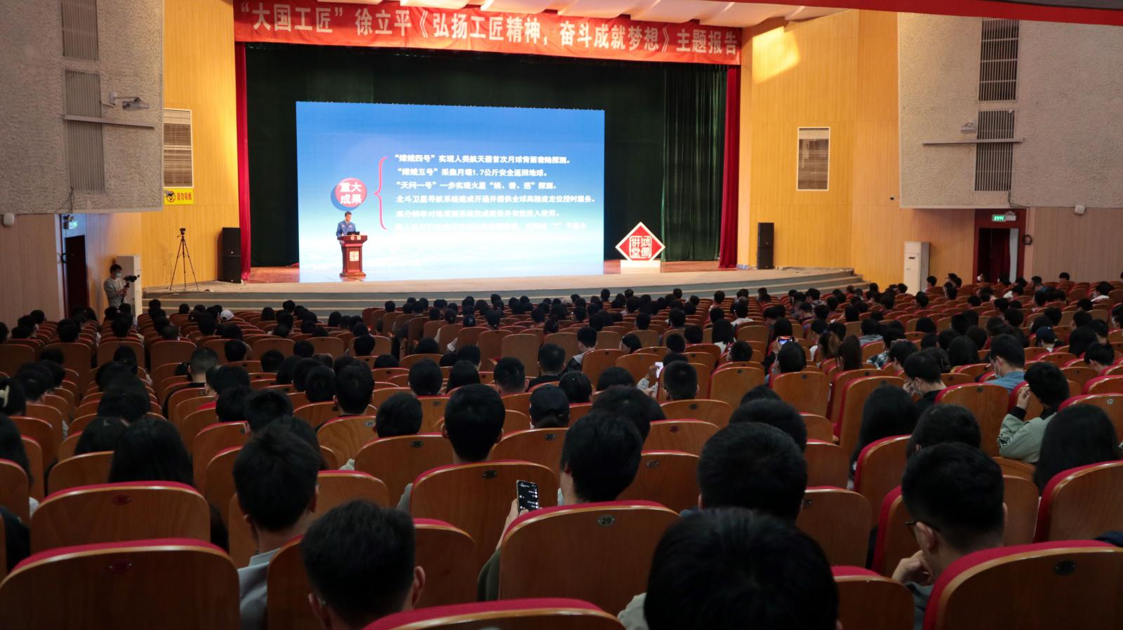 为学习宣传贯彻党的二十大精神,积极开展学习贯彻习近平新时代中国特色社会主义思想主题教育,5月5日下午,威尼斯9499登录入口、党委研究生工作部邀请“感动中国2015年度人物”、2021年“大国工匠年度人物”,国家高级技师、航天特级技师徐立平做客“鸿儒讲堂”,以“弘扬工匠精神 奋斗成就梦想”为主题,在北校区文化活动中心大礼堂为师生作报告,引导广大研究生厚植家国情怀,弘扬工匠精神,勇担时代责任,自觉将小我融入大我,践行科技报国使命。校宣传部、研工部、威尼斯9499登录入口相关负责人,研究生辅导员和1000余名研究生参加,报告会由校党委常委、宣传部部长季庆阳主持。
