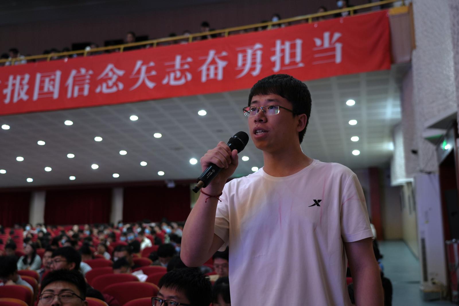 交流环节,徐立平与在场师生进行了亲切互动和深入讨论,逐一解答同学们提出的问题。“在您30多年的工作生涯中遇到最大的困难和挑战是什么呢?您是怎样克服的呢?”对此,徐立平感慨道,“每一次落刀其实都是一次惊心动魄的历程,特别是在密闭的环境下进行火药雕刻,更是失之毫厘便会粉身碎骨,但不管遇到多危险的操作环境和任务,肩头的使命担当和团队携手共进的‘战友’永远是支撑我前行的动力!”“今年有很多研究生毕业生要前往航天研究所工作,我也是其中一员,请问您可不可以给我们未来的航天工作者说几句鼓励的话。”徐立平欣慰地说,“中国未来的航天重任在你们年轻人肩膀上,希望同学们能够在未来的工作岗位上练就过硬本领,传承航天精神和工匠精神,坚守奉献、锐意创新,为国家的繁荣发展贡献青年力量。” 徐立平坚定的价值追求以及不懈的奋斗精神深深打动了在场师生。