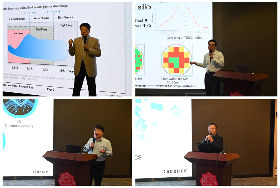 本次会议邀请了香港中文大学姜立军教授(IEEE Fellow)作题为《A Migration from Black Box to Physics Discovery in Electromagnetic Modeling》的特邀报告,英特尔数据中心与人工智能事业部主任工程师吴杨介绍了《Signal and Power Integrity in Advanced Packaging Design》,Cadence资深技术支持总监王辉和系统仿真事业部产品工程总监李可舟,分别介绍了多物理场系统分析技术、Optimality AI新技术和Clarity电磁分析工具。