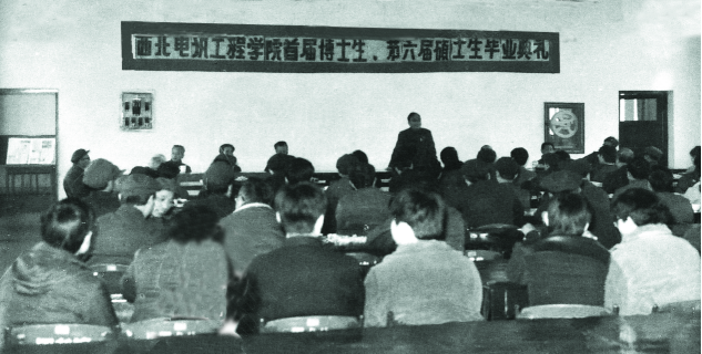▲学校首届博士生、第六届硕士生毕业典礼会场。(西电档案馆馆藏)